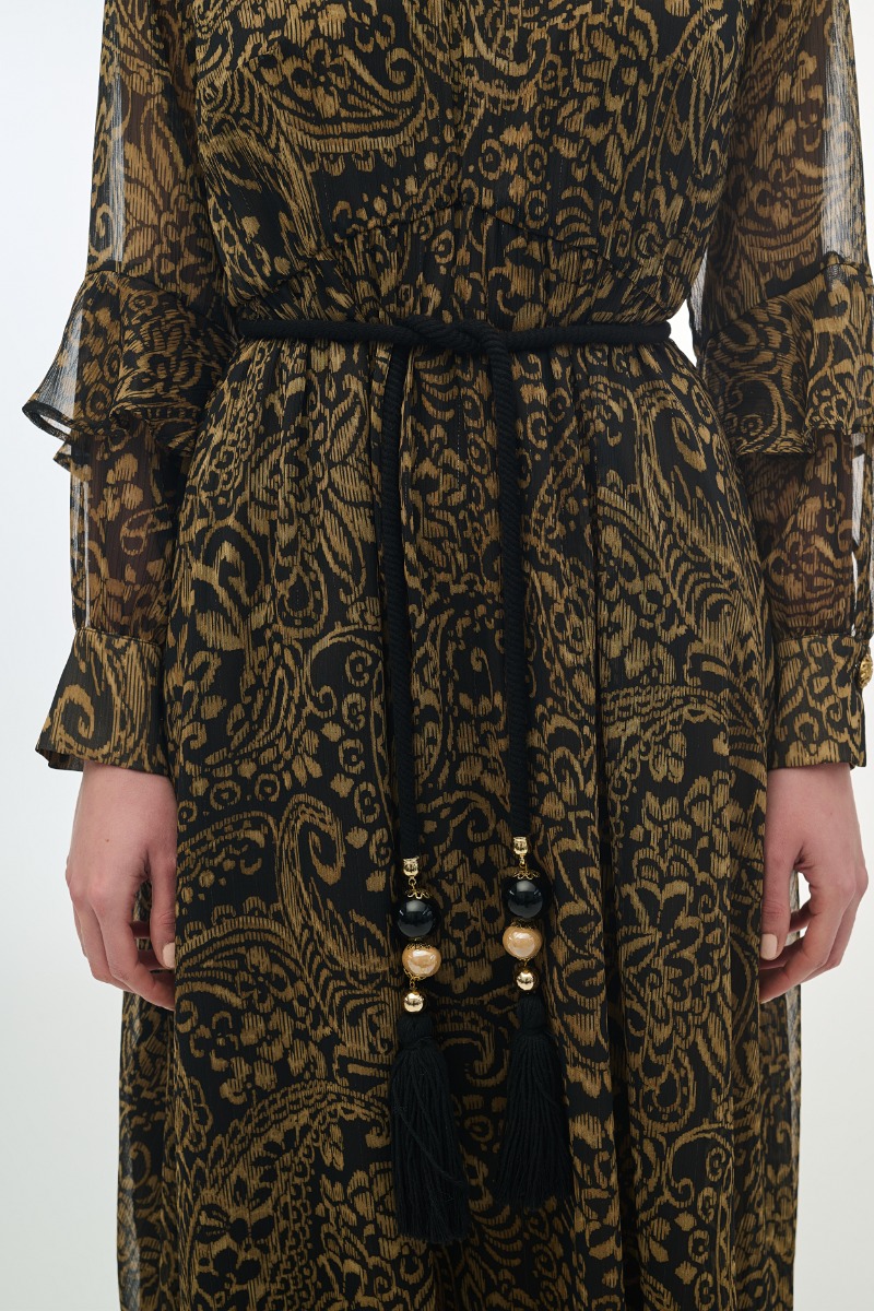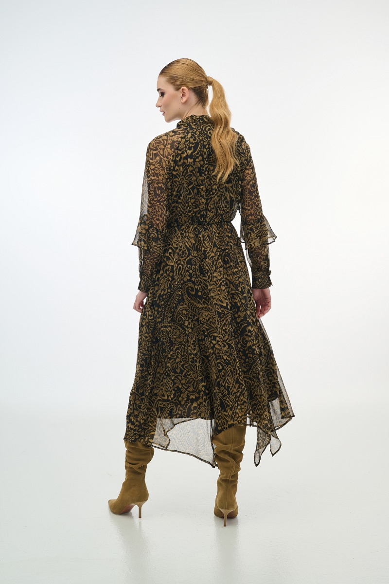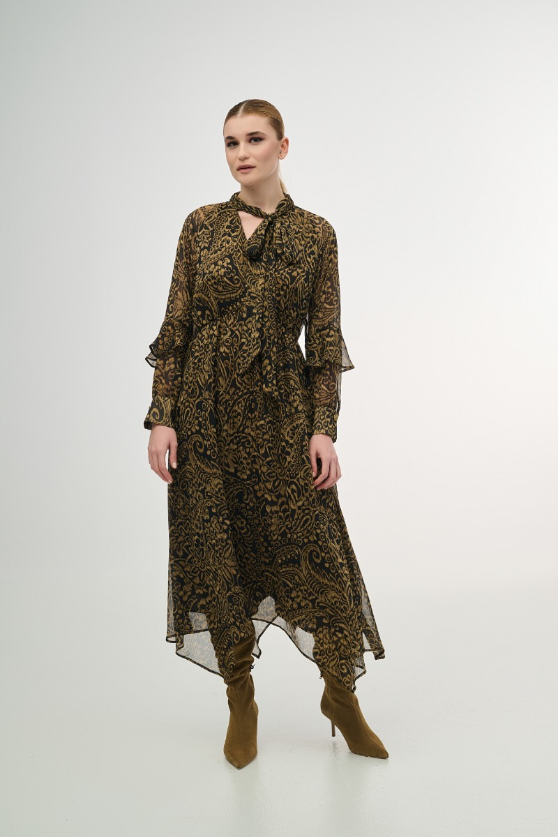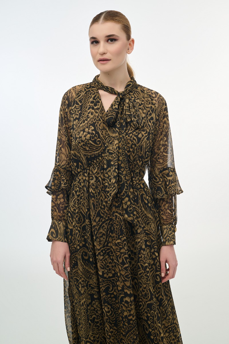 Φόρεμα εμπριμέ με βολάν στο μανίκι