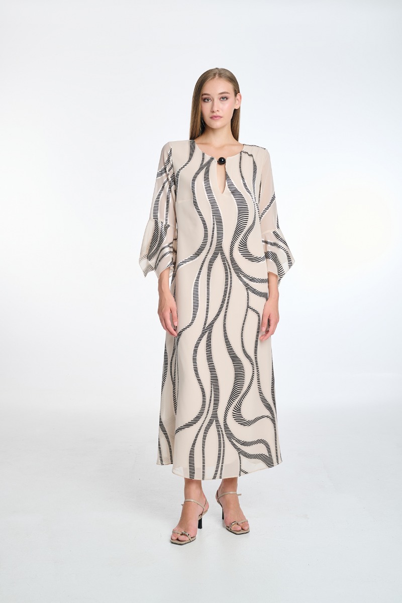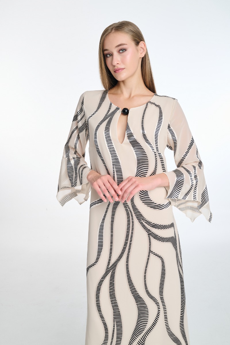Φόρεμα μακρύ ντεβορέ με μπίλια στο λαιμό