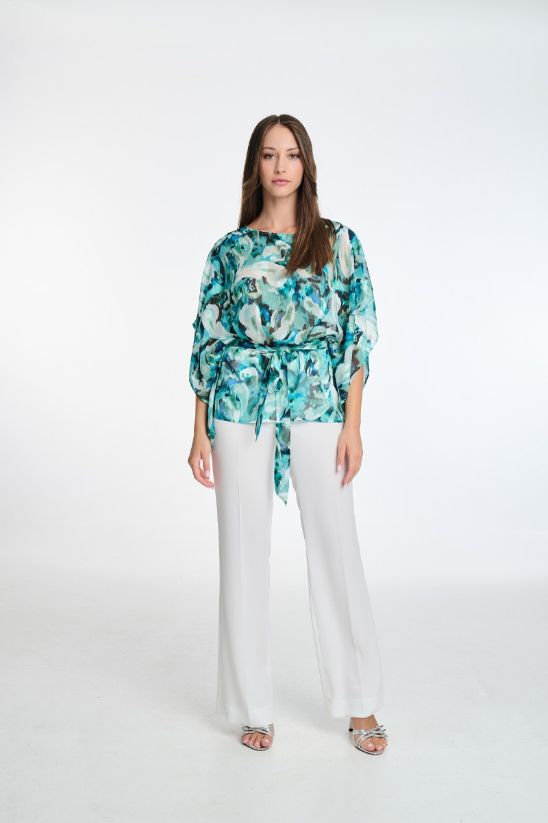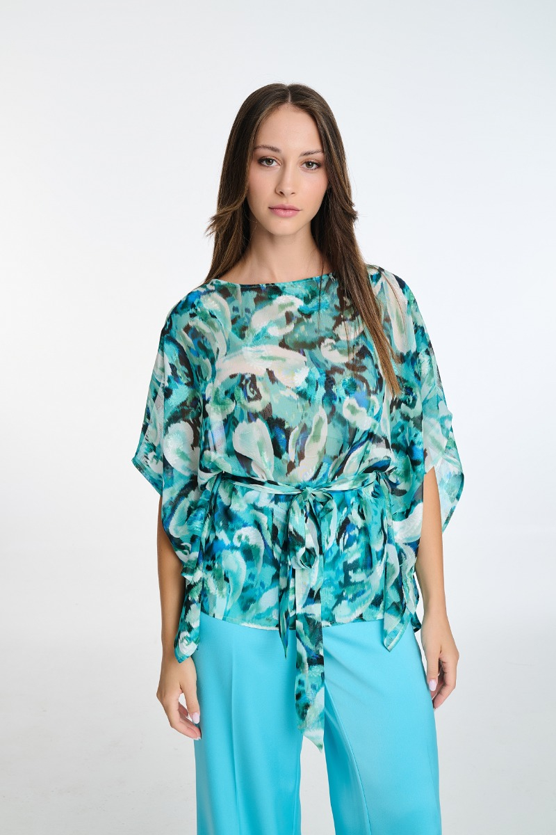 Μπλούζα εμπριμέ με ζώνη στη μέση