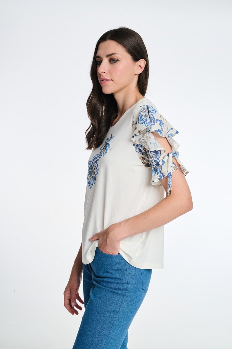 Μπλούζα με τύπωμα και βολάν στα μανίκια