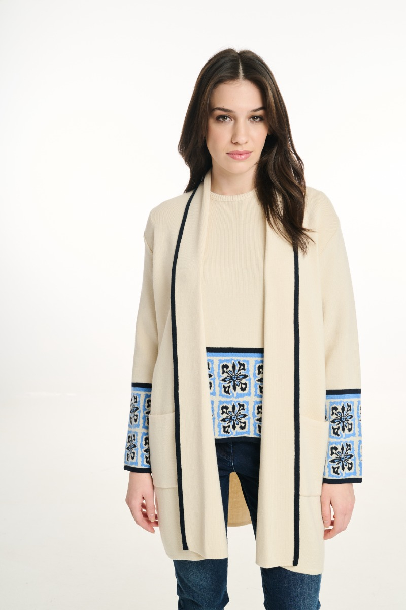 Ζακέτα πλεκτή με ζακάρ στα μανίκια