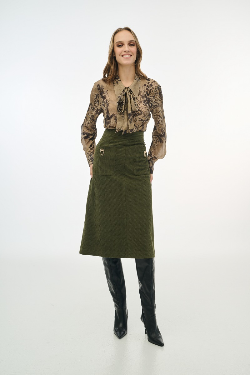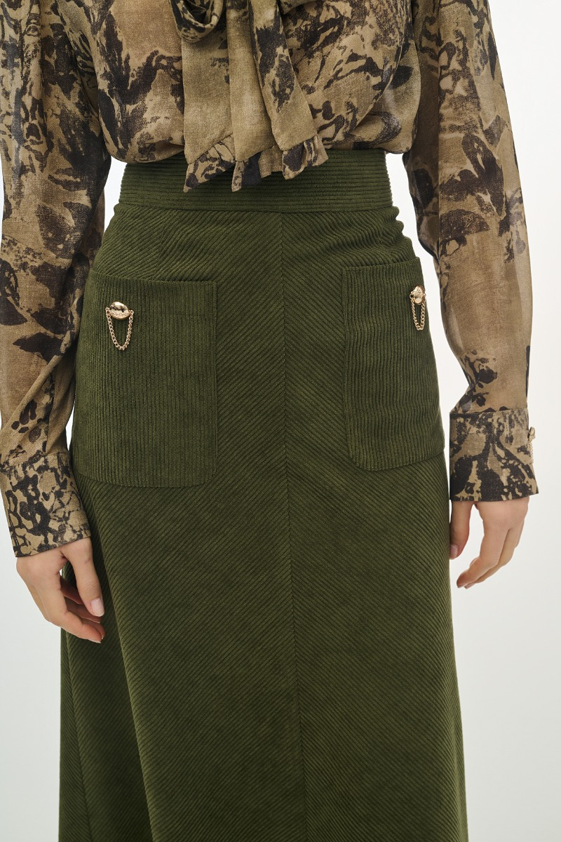 Φούστα κοτλέ με χρυσά κουμπιά