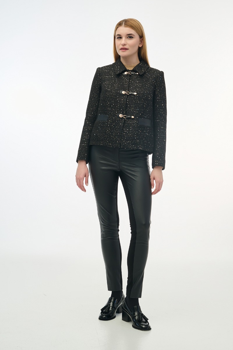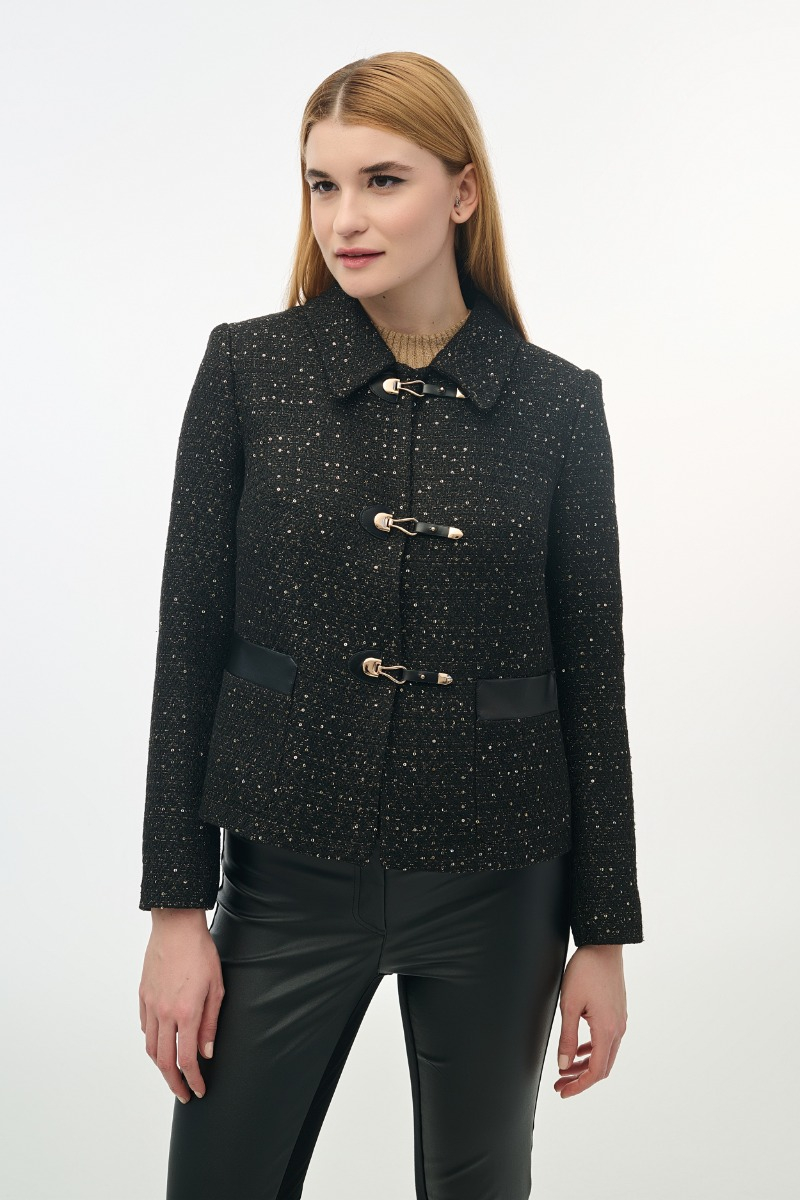 Σακάκι με διακριτική παγιέτα και λεπτομέρειες απο δερματίνη